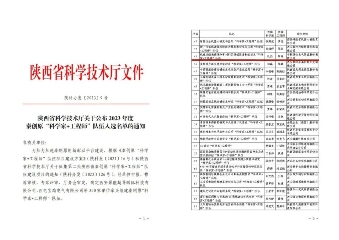 1月16日,陕西省科学技术厅公布2023年度秦创原“科学家+工程师”队伍入选名单,共300支队伍入选。由中铁伟德体育装备股份有限公司(中国中...