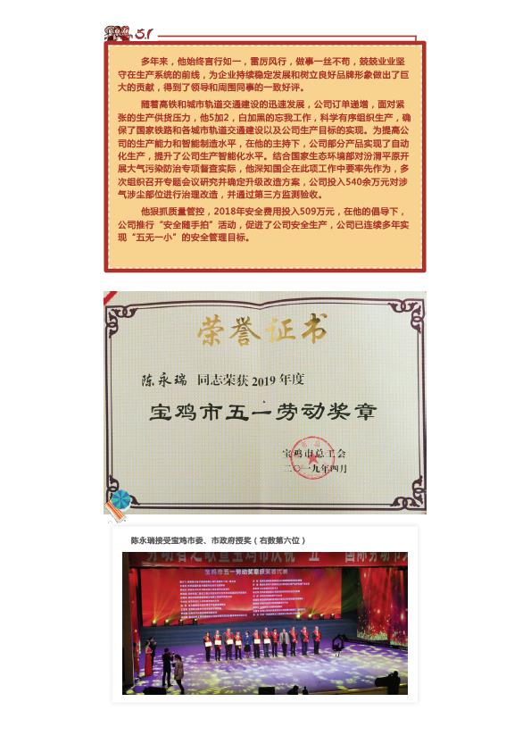 公司职工获宝鸡市“五一劳动奖章”及“宝鸡工匠”荣誉称号